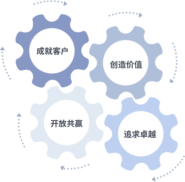 成就客户是一切决策的出发点,创造价值是衡量所有工作的标准,追求卓越是星耀国际做事做人的态度,开放共赢是星耀国际的格局也是最终的结果。价值观的齿轮环环相扣,推动着组织里的每个人不断向前。